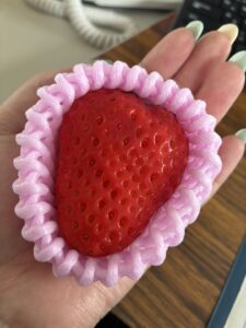 ブログ 大きないちご🍓 2026.03.27 小山内機器さんからとても大きないちご🍓をいただきました!一粒ずつ大事に梱包されています☺️ 手に乗せてみると、どれだけ大きいのか分かります!第2のS木、大興奮です🤯かぶりついてる瞬間をパシャリ📸一口食べて驚き!びっくりするほど甘いんです!!よく口にするいちごは先端が甘く、ヘタに近づくほど酸味が強いですが…こちらのいちごはヘタ側もとても甘く、最後まで驚きです🫢 小山内機器さん、ありがとうございます🙇🏻♀️ エコアクション更新審査 ドーナツ🍩