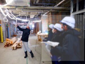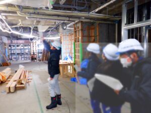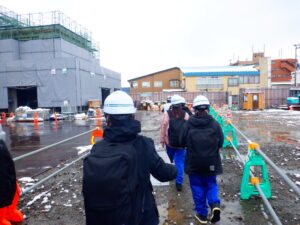 まずは現在施工中の造道小学校改修工事の現場見学です